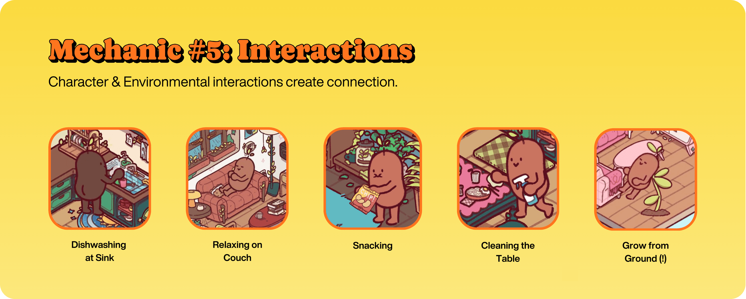 Về mặt môi trường, đồ trang trí và phòng mới mở khóa không đứng im. Nội thất và đồ vật theo chủ đề (sofa trong phòng khách, bồn rửa trong bếp) được hoạt hình hóa theo cách phù hợp với ngữ cảnh, tạo ra một không gian sống động, biết phản hồi nỗ lực của người dùng. Những tương tác này phục vụ một mục đích tâm lý: phản hồi môi trường xung quanh củng cố sự gắn bó dài hạn bằng cách làm cho người dùng cảm thấy tiến trình của mình có ý nghĩa thật sự — không chỉ là tối ưu hóa số liệu. Kết nối cảm xúc tăng tần suất quay lại, giảm churn, và củng cố việc hình thành thói quen.