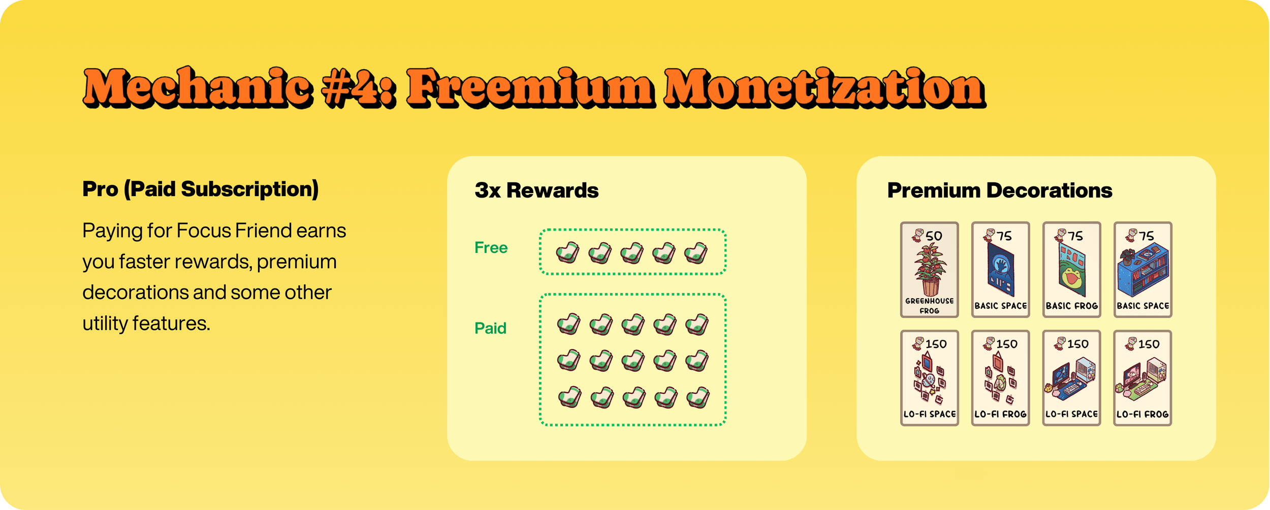 Để monetize, Focus Friend mượn rộng rãi từ các cơ chế freemium.